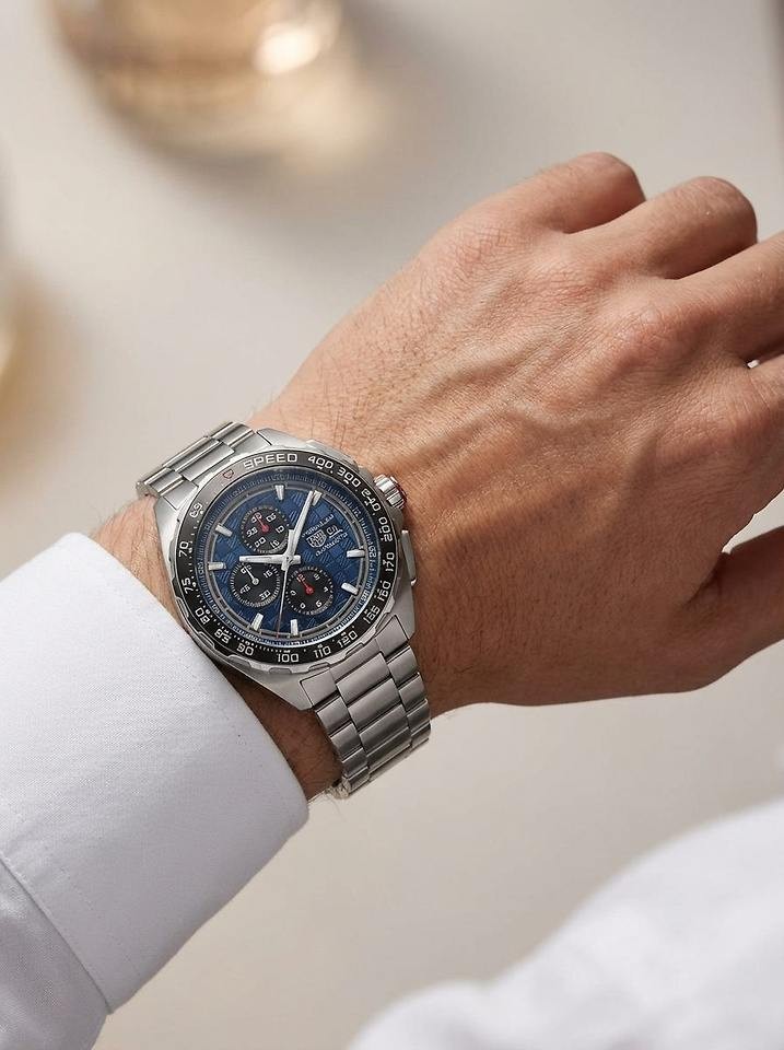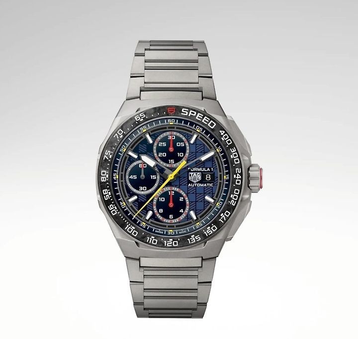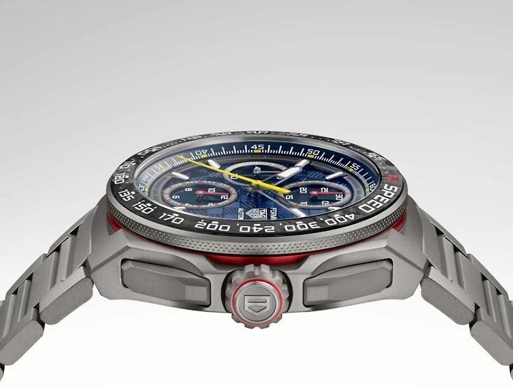 가벼운 티타늄 소재의 태그호이어 포뮬러 1 크로노그래프는 아드레날린이 넘치는 태그호이어와 오라클 레드불 레이싱의 파트너십을 기념합니다. 정확성과 대담한 디자인, 지속적인 퍼포먼스를 결합하여 두 브랜드가 공동으로 제작한 44mm 타임피스는 스피드를 즐기는 이들을 위해 탄생했습니다.