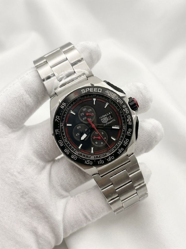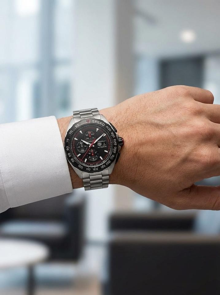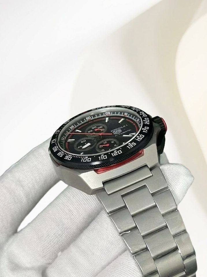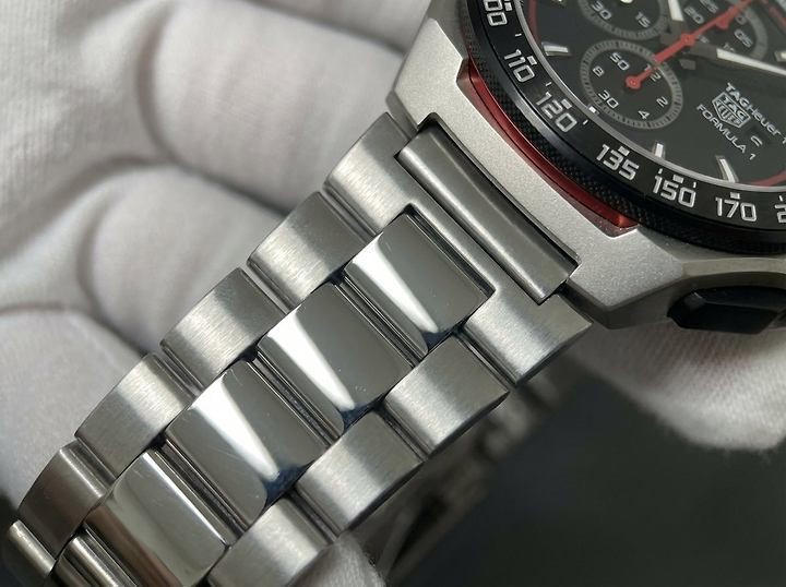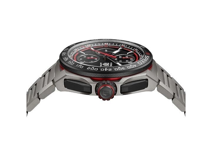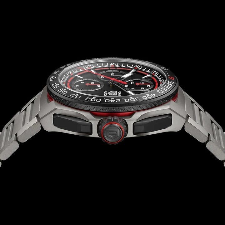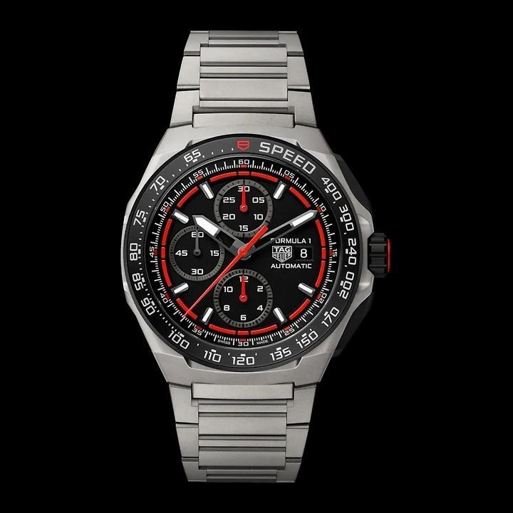 가벼운 티타늄 소재의 태그호이어 포뮬러 1 크로노그래프 입니다. 정확성과 대담한 디자인, 지속적인 퍼포먼스를 결합하여 두 브랜드가 공동으로 제작한 44mm 타임피스는 스피드를 즐기는 이들을 위해 탄생했습니다.