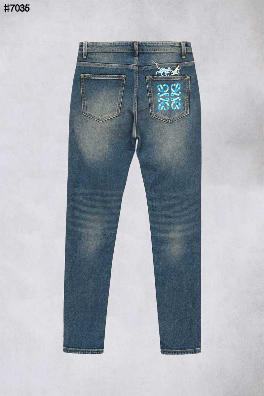 로에베 청바지 디자인 아나그램 포켓 자수 로고 슬림핏 데님 팬츠