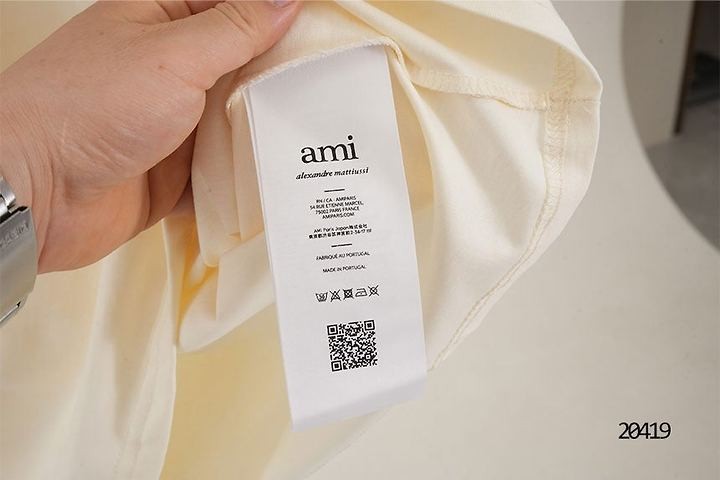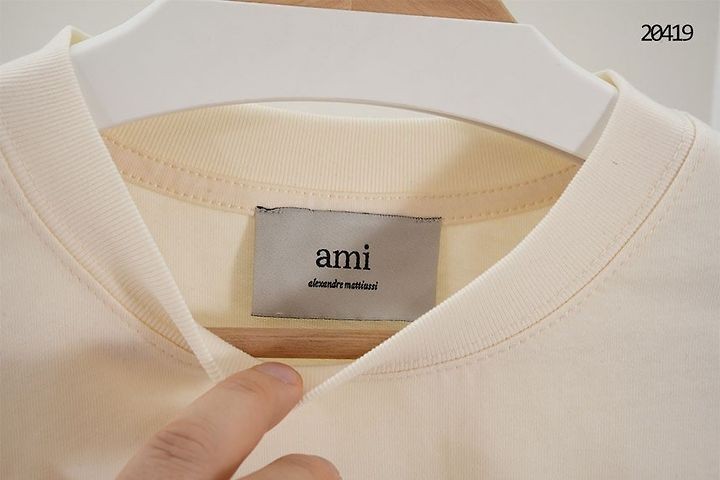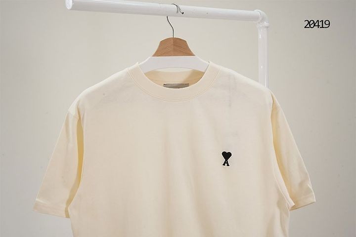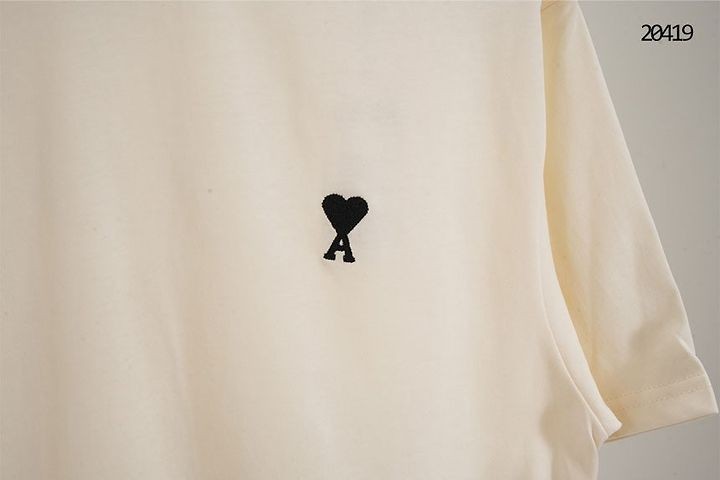 아미 빅투아르 백 레터링 프린트 반팔 티셔츠 아이보리