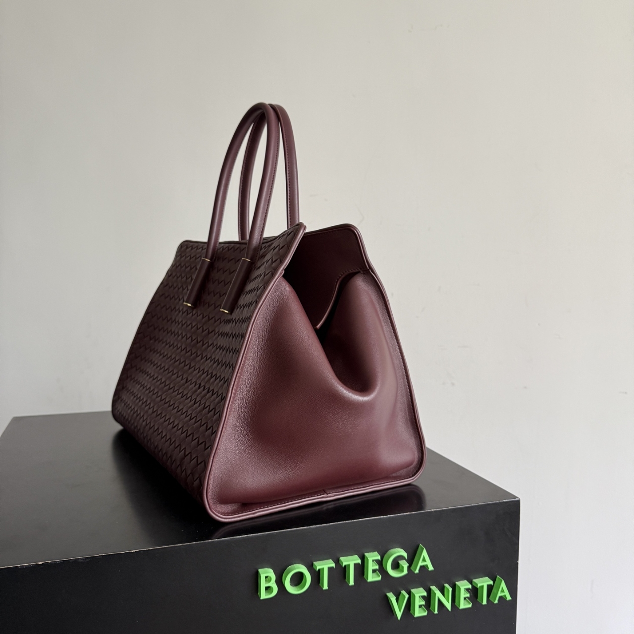 보테가베네타 레더 토트백 (버건디, 블랙)