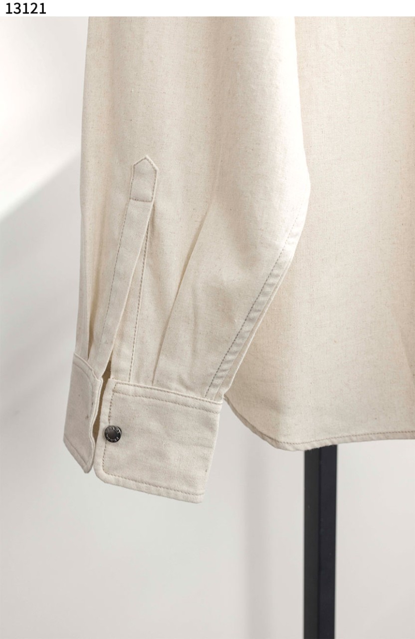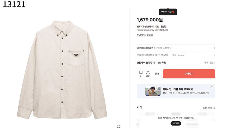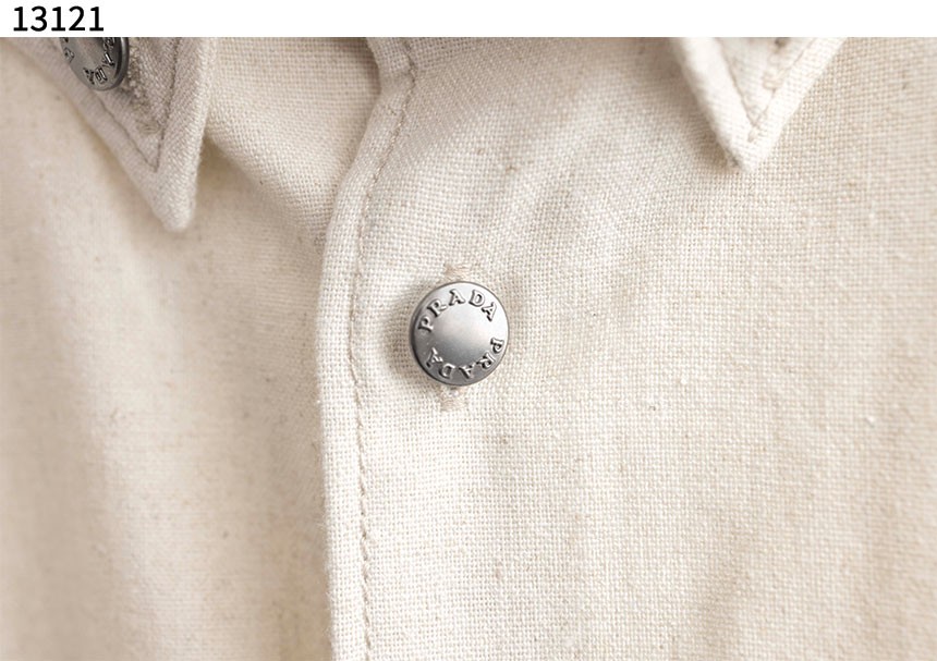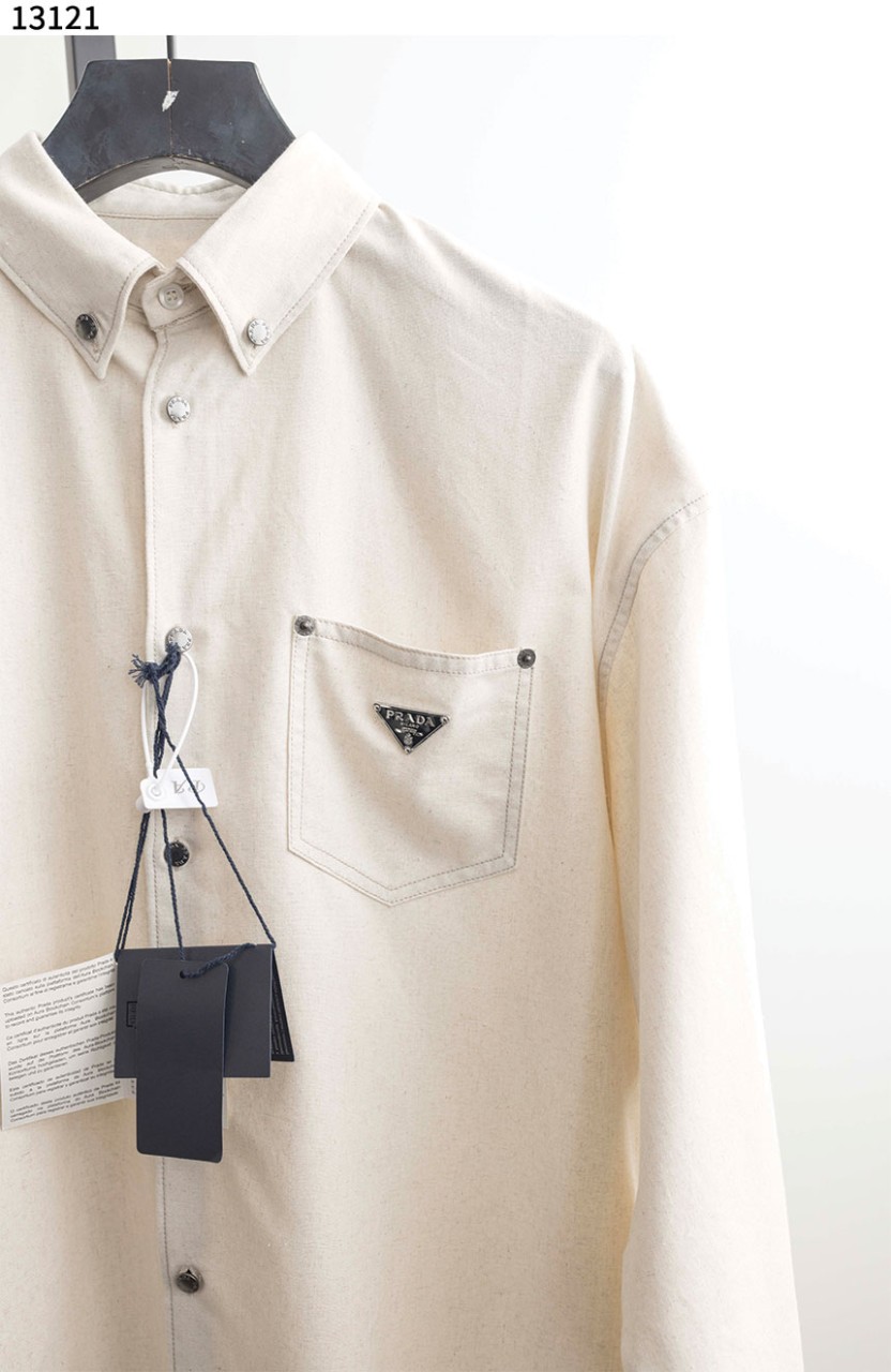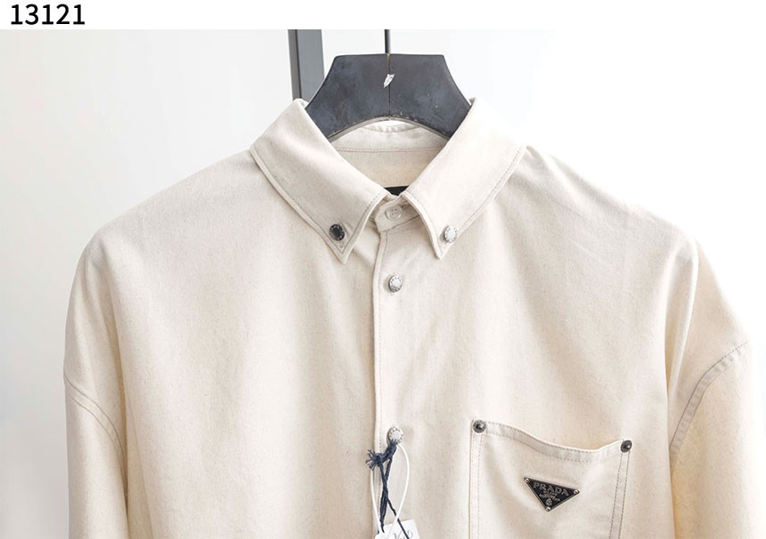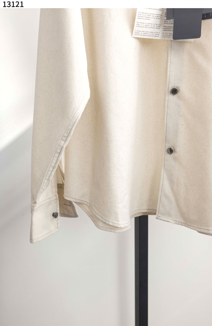 프라다 샴브레이 셔츠 내츄럴 아이보리
